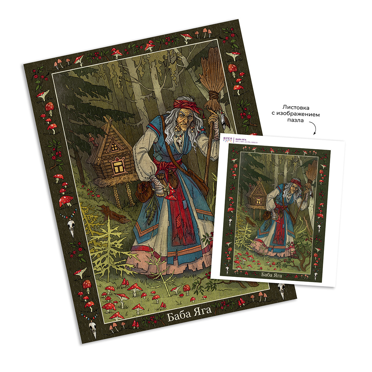 Пазлы ТМ Фрея - это яркие, интересные, увлекательные дизайны. Специально для вас мы разработали уникальную серию картин " Славянская мифология". Готовый пазл с таким сюжетом может стать интересным и необычным украшением интерьера. Также пазлы ТМ Фрея будут отличным подарком для ваших близких. Детали пазлов этой серии толще обычных. Для изготовления деталей мы используем европейский картон премиум качества. Такой картон не деформируется и не расслаивается даже при многократной сборке пазла. Размер готовой работы может отличаться от указанной на сайте. Актуальная информация размещена на упаковке товара. Баба- яга - персонаж славянской мифологии, который воплощен в образе наделенной магической силой старухи. Иногда она выступает как отрицательный персонаж, иногда в качестве помощницы. Помимо русских встречается в сказках южных и западных славян. Сообщить о неточности в описании