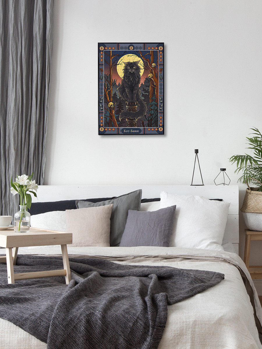 Пазлы ТМ Фрея - это яркие, интересные, увлекательные дизайны. Специально для вас мы разработали уникальную серию картин " Славянская мифология". Готовый пазл с таким сюжетом может стать интересным и необычным украшением интерьера. Также пазлы ТМ Фрея будут отличным подарком для ваших близких. Детали пазлов этой серии толще обычных. Для изготовления деталей мы используем европейский картон премиум качества. Такой картон не деформируется и не расслаивается даже при многократной сборке пазла. Размер готовой работы может отличаться от указанной на сайте. Актуальная информация размещена на упаковке товара. Кот Баюн – огромный черный кот. Он обитает на высоком железном или золотом столбев безжизненном лесу. Когда идет вниз по столбу – песни поет, поднимается вверх – сказкирассказывает. Когти у кота железные, а голос раздается на несколько верст и напускает наврагов неодолимый сон. Имя кота Баюн означает рассказчик, сказитель и происходит от глагола баять – рассказывать, говорить. Если герою сказки удается победить кота, Баюн соглашается служить ему: рассказыватьцелебные сказки, которые могут спасти от любого недуга. В ранних изданиях русских сказок котБаюн не встречается, поэтому есть мнение, что это поздний персонаж, придуманный тольков XIX веке. Кот ученый из сказки Пушкина «Руслан и Людмила» – интерпретация образа кота БаюнаСообщить о неточности в описании