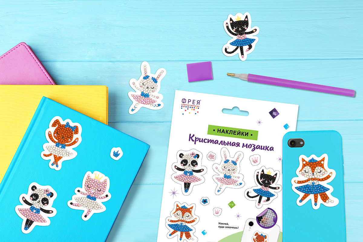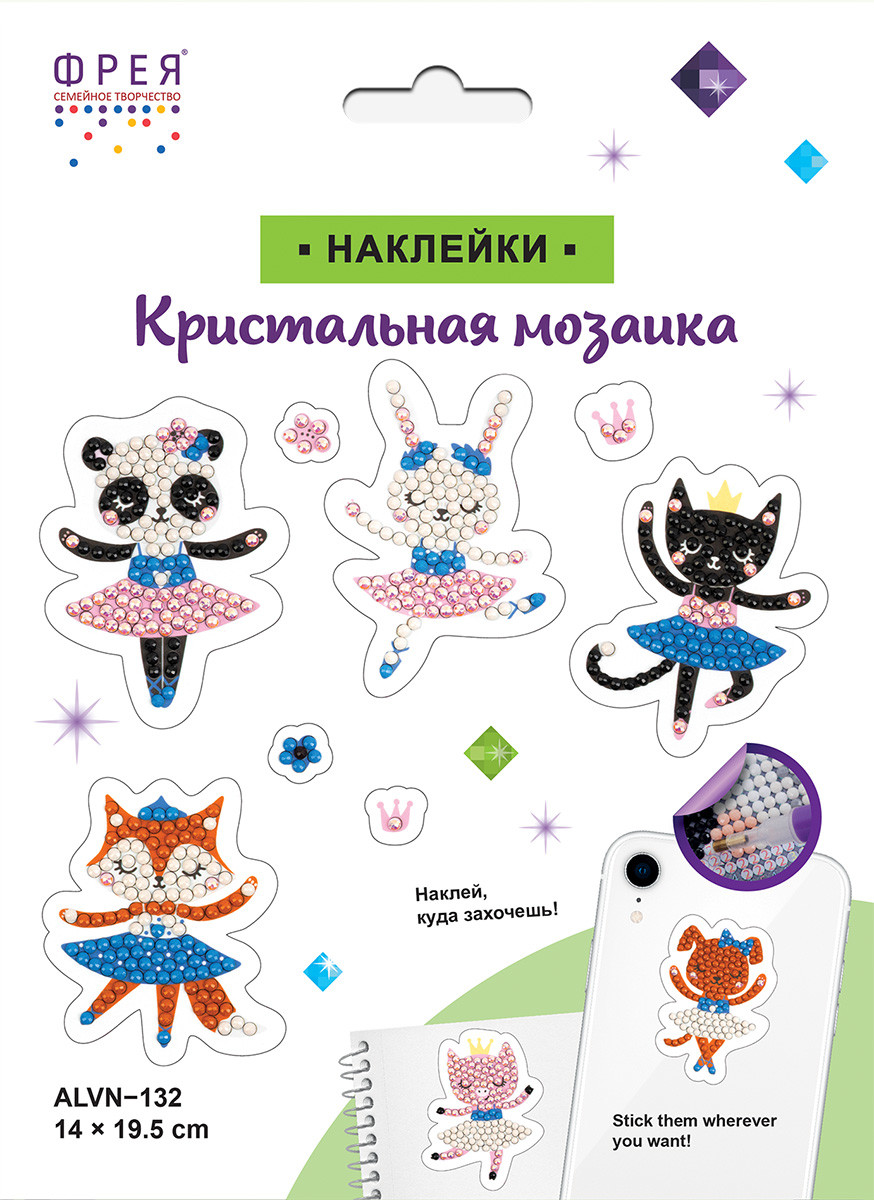 Набор по изготовлению наклеек в технике " Кристальная/ алмазная мозаика". Выполнение работы не требует специальных навыков, выкладывать наклейки очень легко и быстро. Стразы наклеиваются поверх изображения со схемой на уже нанесенный клеевой слой. Увлекательный процесс создания изделий поможет развить мелкую моторику и повысить концентрацию внимания. Готовыми наклейками с яркими стразами можно украсить любую ровную поверхность, например блокнот, тетрадь, телефон и многое другое. В набор ТМ ФРЕЯ " Кристальная мозаика" входит:- один лист с несколькими небольшими наклейками, с напечатанными на них схемами для приклеивания страз и клеевым слоем с защитной плёнкой,- стилус и восковая подушечка,- круглые стразы: 5 цветов, запас более 30%- картонный лоток, - инструкция. Тип выкладки: частичная. Уровень сложности: 1 из 3. Размер готового изделия: 14 х 19. 5 см. Размер упаковки: 1х16, 3х22, 5см. Набор сертифицирован для детского творчества. Сообщить о неточности в описании