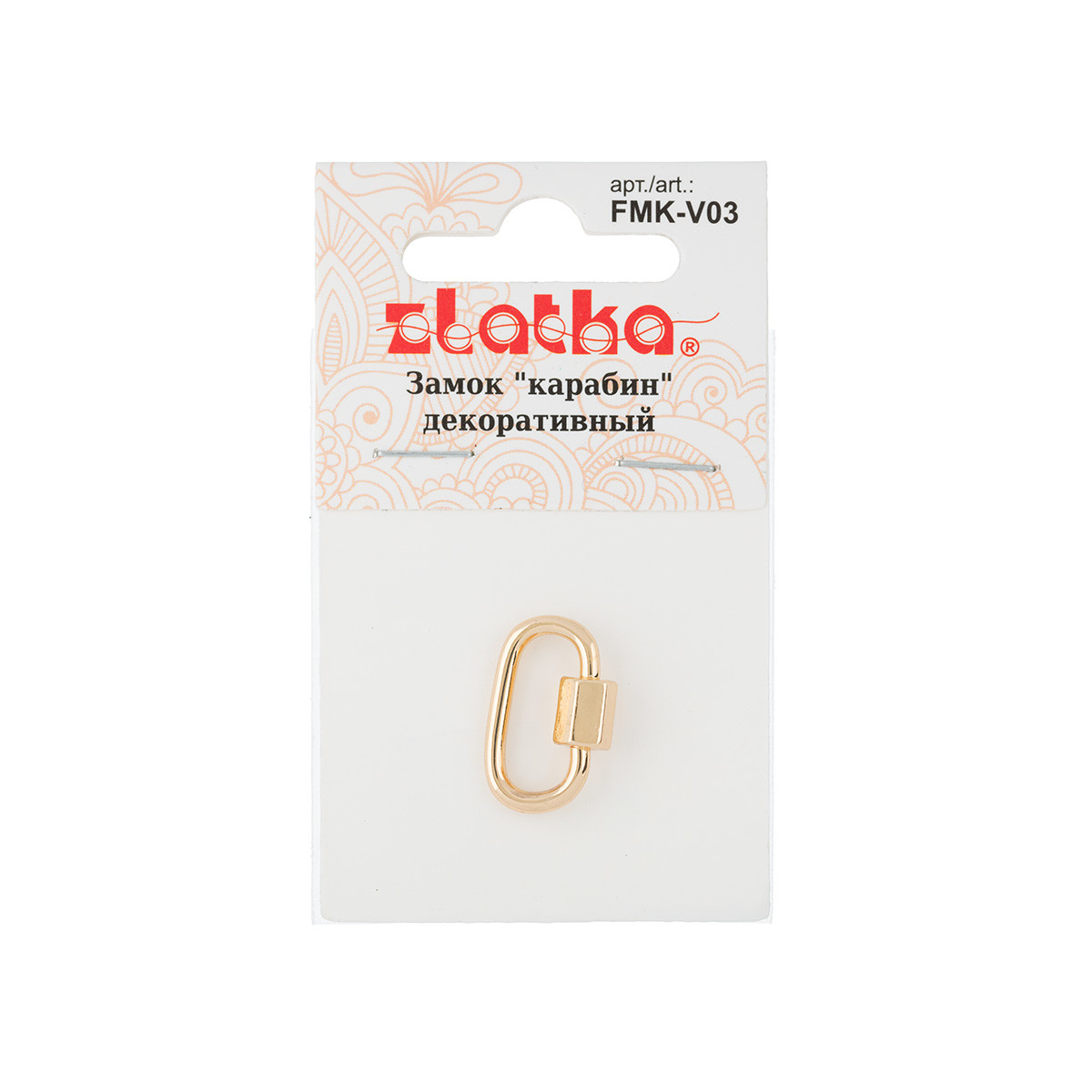 " Zlatka" Замок " карабин" декоративный " овал" FMK- V03 12 х 18 мм 1 шт №02 под золото